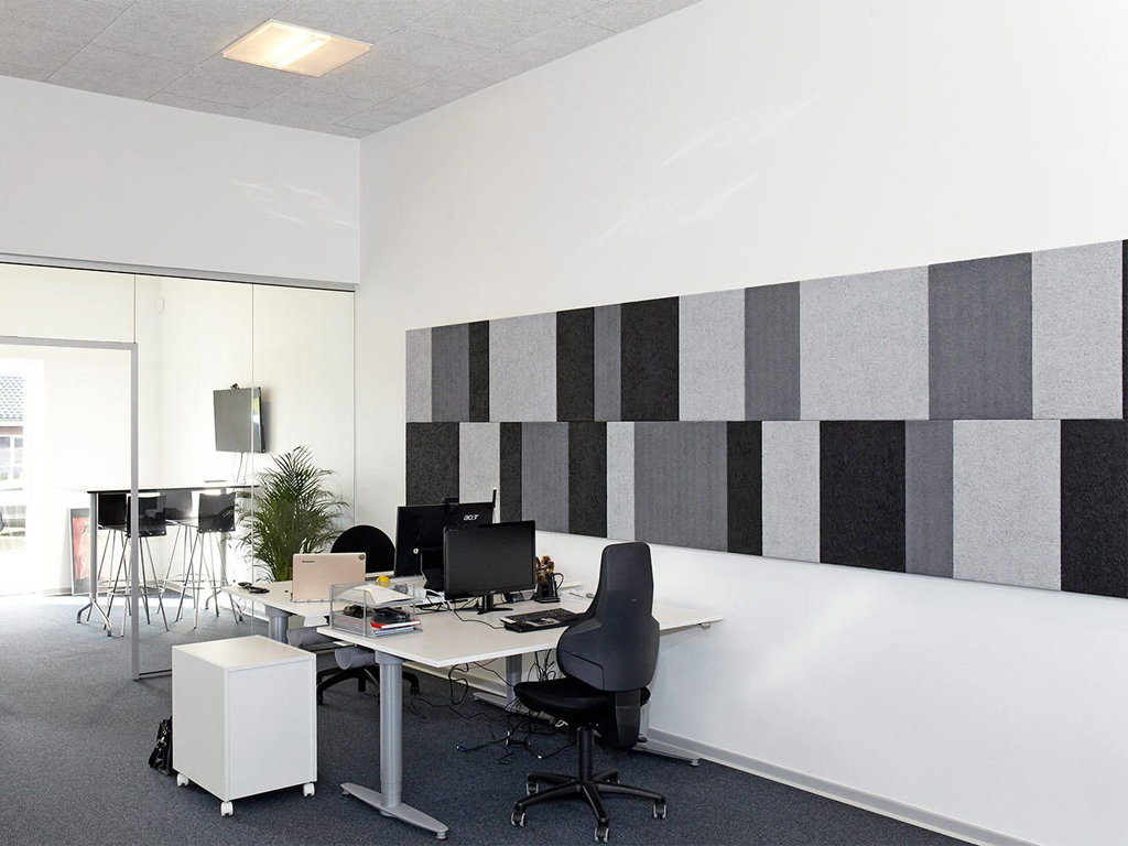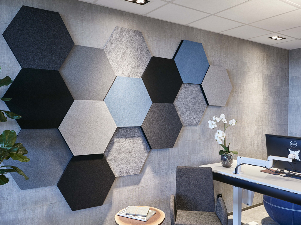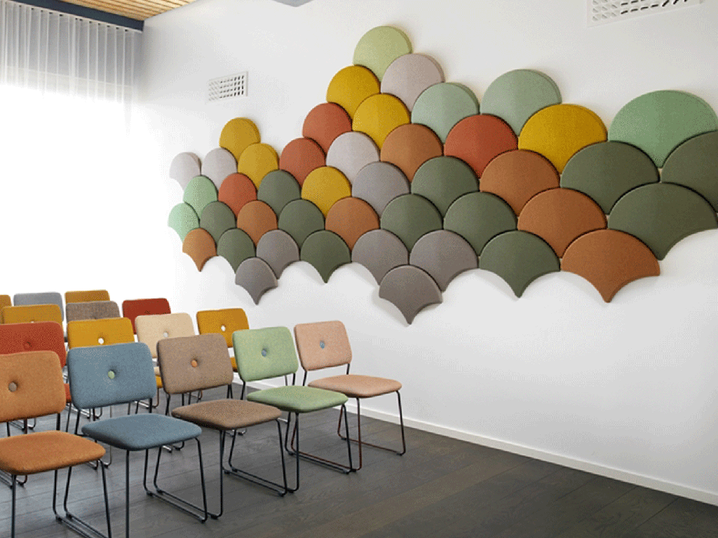Акустические панели из полиэстера. Применяются в качестве декоративных элементов интерьера. Обладают превосходными акустическими показателями, придавая помещению высокий уровень акустического комфорта. Снижает эхо и гулкость в помещении. Панели выполнены 100% полиэфирного волокна высокой плотности, экологически безопасны, пропитаны огнезащитными составами, которые придают панелям класс пожаробезопасности КМ1