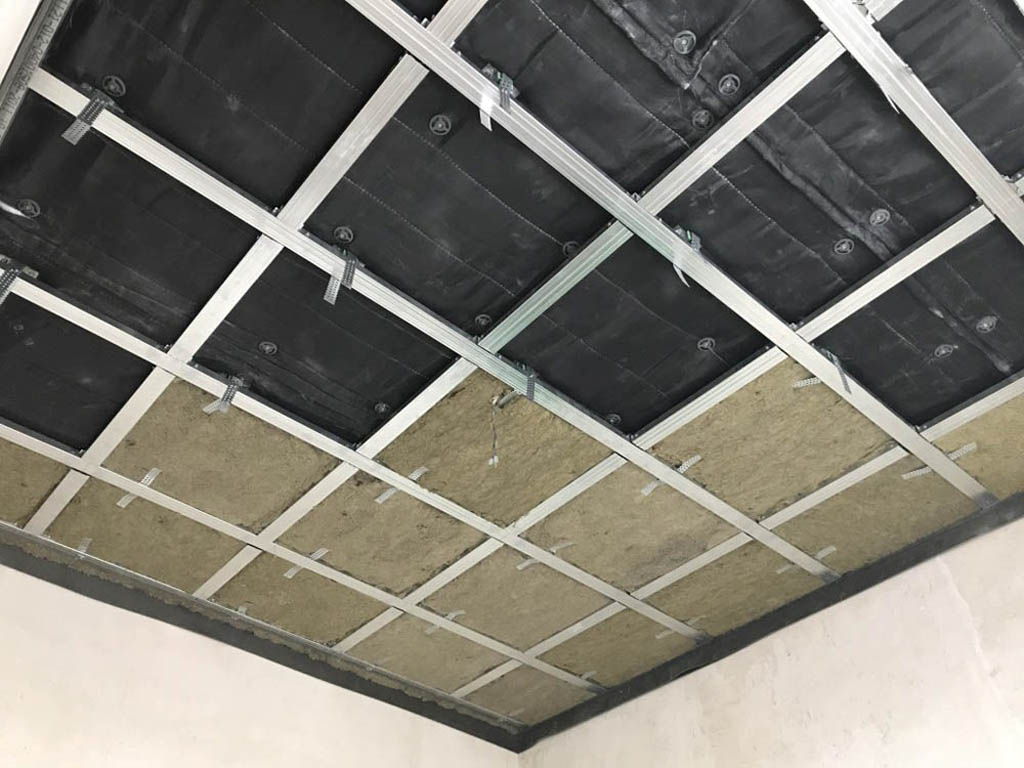 Плитами звукопоглощающего материала МаксФорте – ЭКОплита PRO плотно заполнить пространство между профилями.