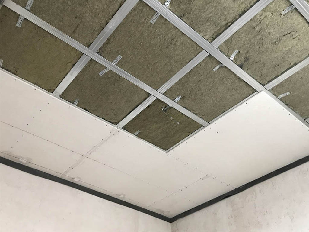 Плитами звукопоглощающего материала МаксФорте-ЭКОплита PRO плотно заполнить пространство над профилями
