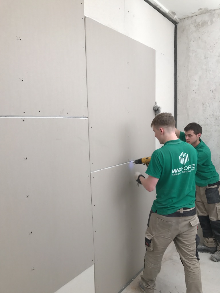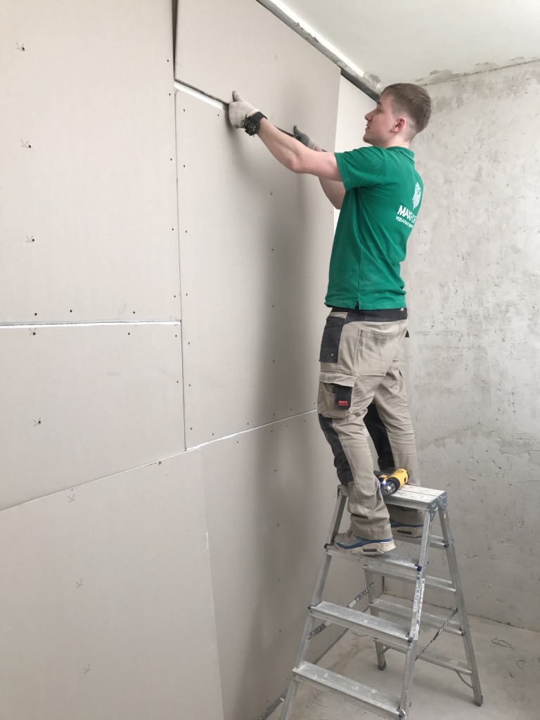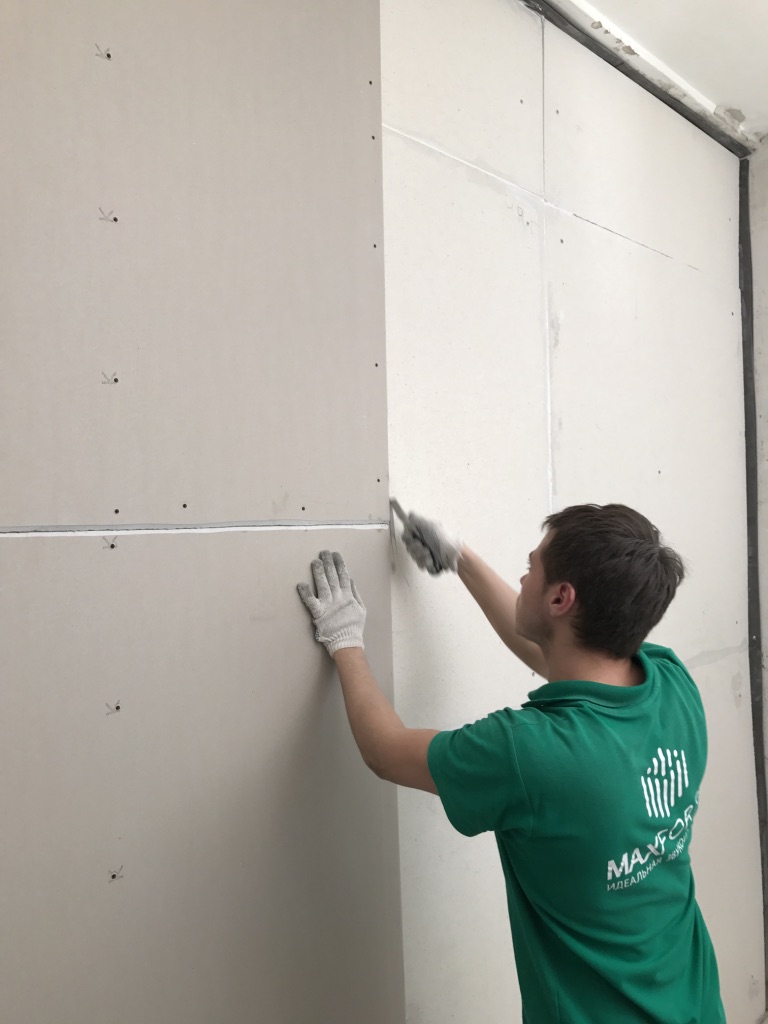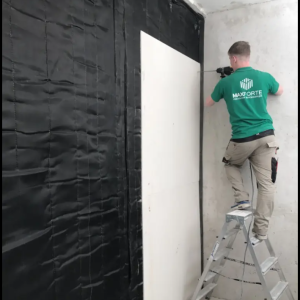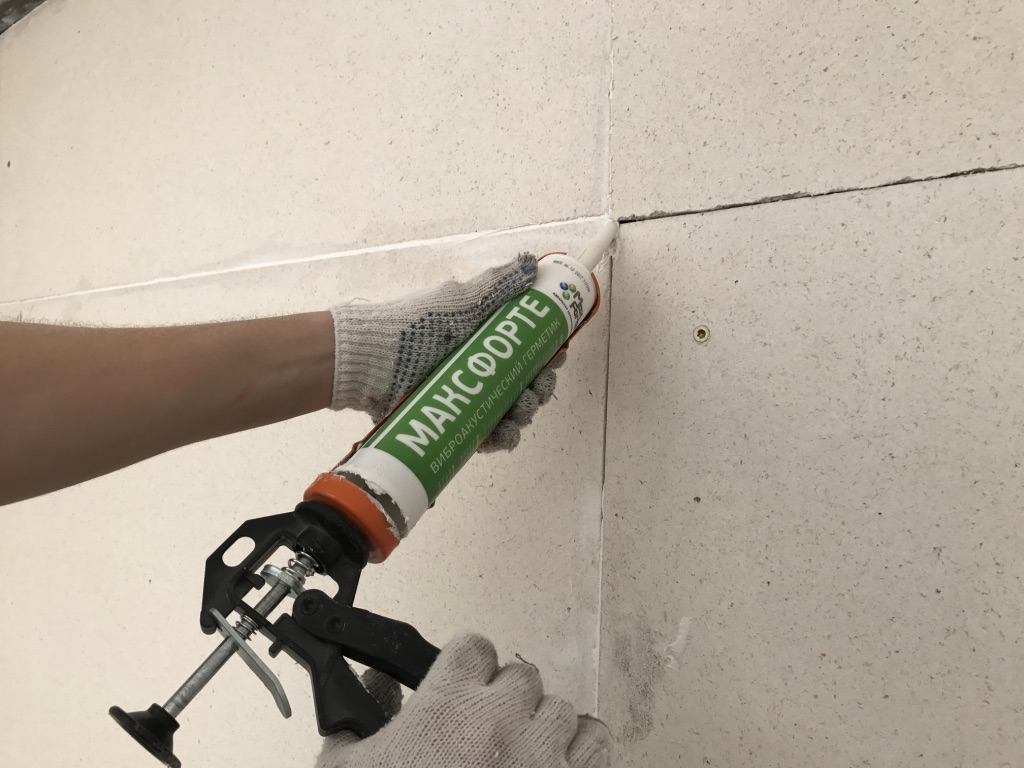 Самый тонкий вариант звукоизоляции стены - бескаркасная схема с использованием