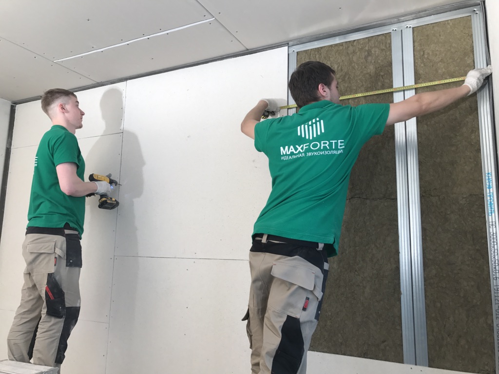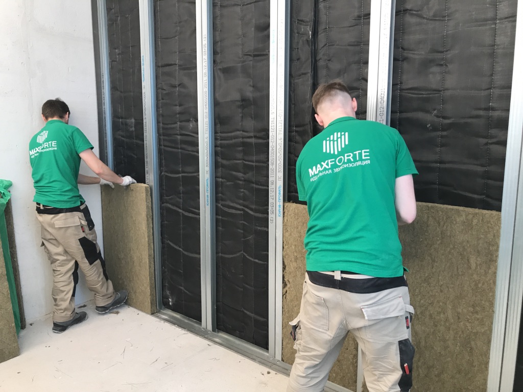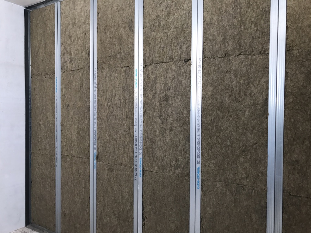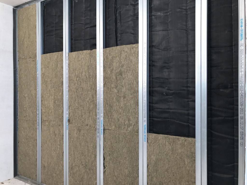 Усиленная звукоизоляция стены в квартире с использованием двух звукопоглощающих материалов: