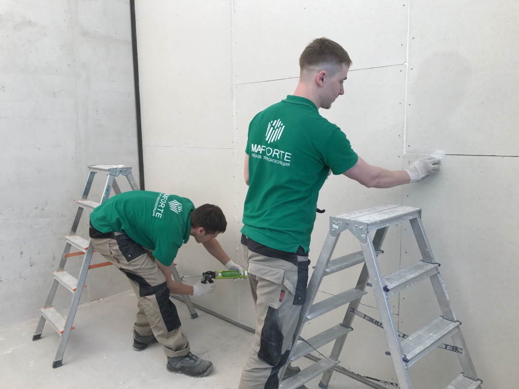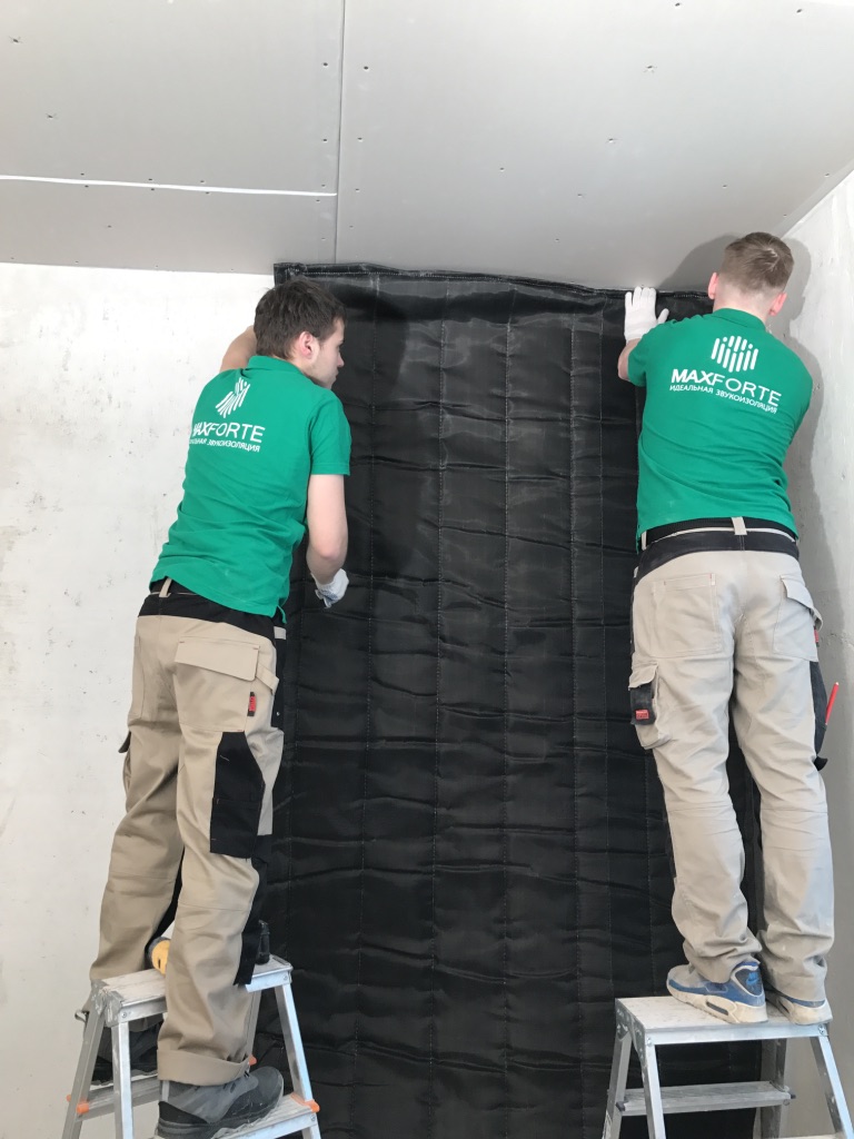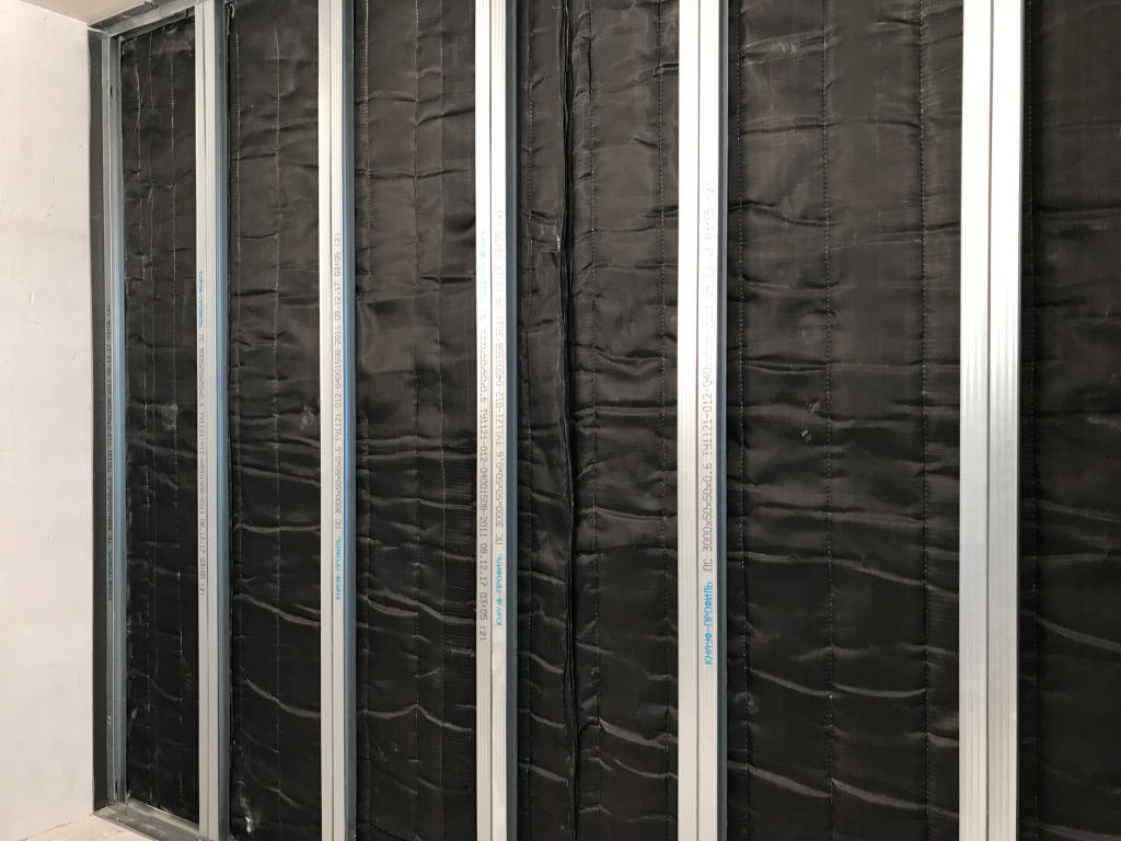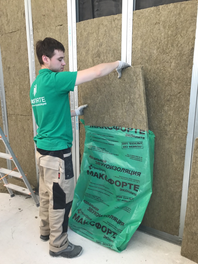 Усиленная звукоизоляция стены в квартире с использованием двух звукопоглощающих материалов: