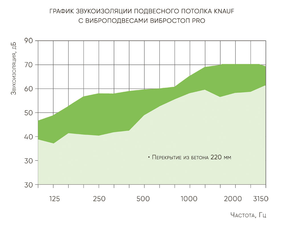 - Резонансная частота креплений ВиброСтоп PRO всего 14 Гц, что позволяет фиксировать прибавку к звукоизоляции даже в области низких частот.
