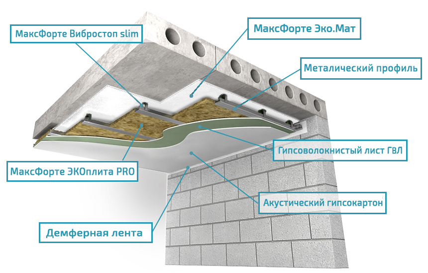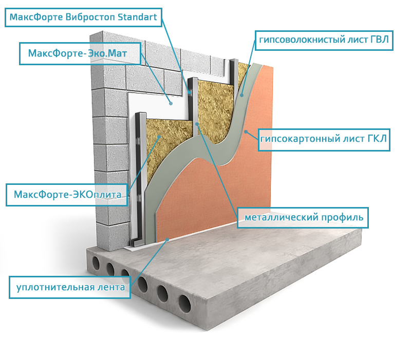 Типовое решение для звукоизоляции. Эффективно снижает все виды бытовых шумов.