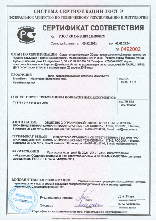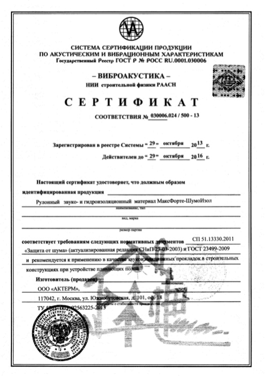 - В МАКСФОРТЕ ШумоИзол используются импортные пластификаторы. Материал обладает высокой прочностью и не рвется.