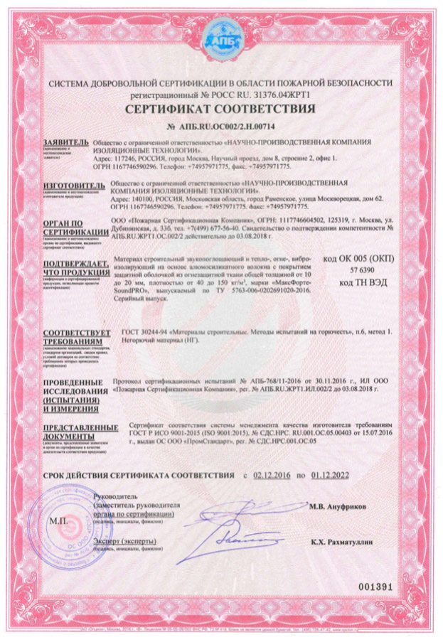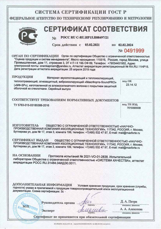 МаксФорте-SoundPRO (СаундПРО) негорючий звукоизоляционный и звукопоглощающий материал нового поколения, толщиной всего 12 мм, обладает всеми необходимыми качествами для идеальной звукоизоляции. При минимальной толщине мм материал обеспечивает максимальную защиту от воздушного и ударного шума и незаменим в небольших квартирах, где на счету каждый сантиметр! Полностью экологически безопасен: не содержит клеящих составов и другой химии. МаксФорте-SoundPRO - идеально подходит для любых помещений: квартиры, детские сады, школы. Также материал выступает в качестве огнезащиты (полностью негорючий) и теплоизоляции!