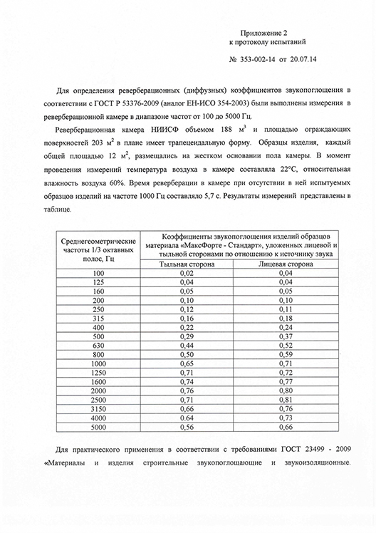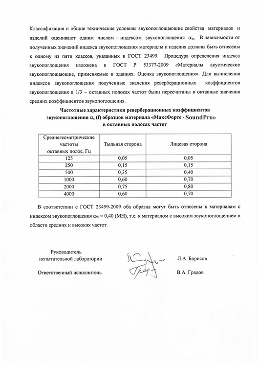 - МаксФорте-SoundPRO обладает превосходными акустическим свойствами: высокий коэффициент звукопоглощения αW на всех частотах (включая низкие).