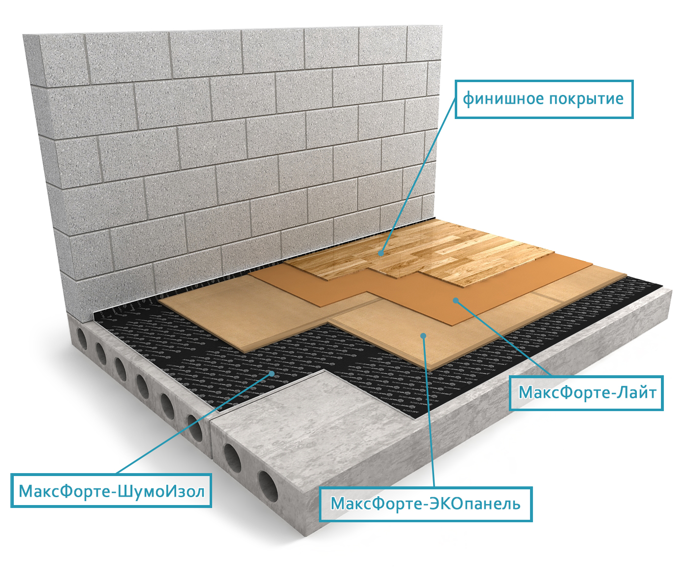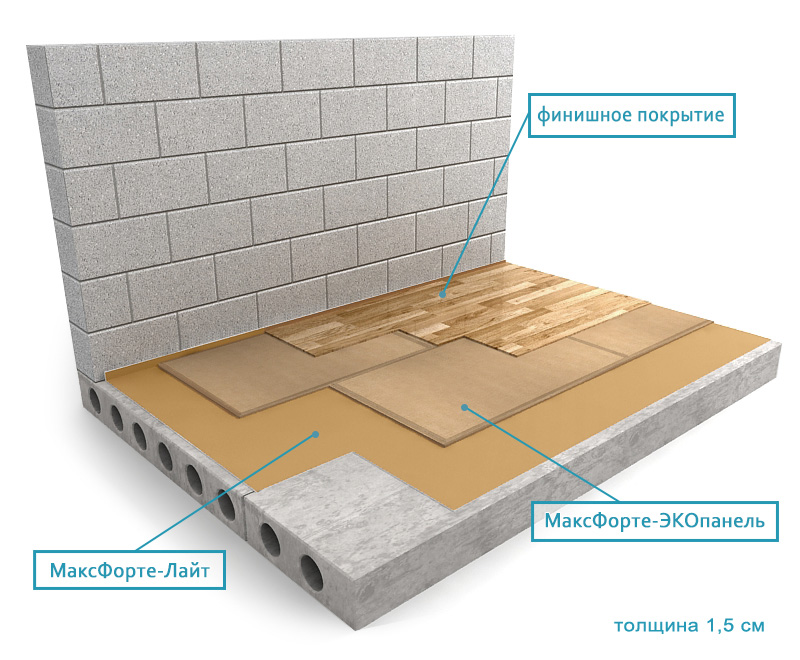 - Звукоизоляция пола. Панели также могут использоваться в конструкции сборного настила пола.