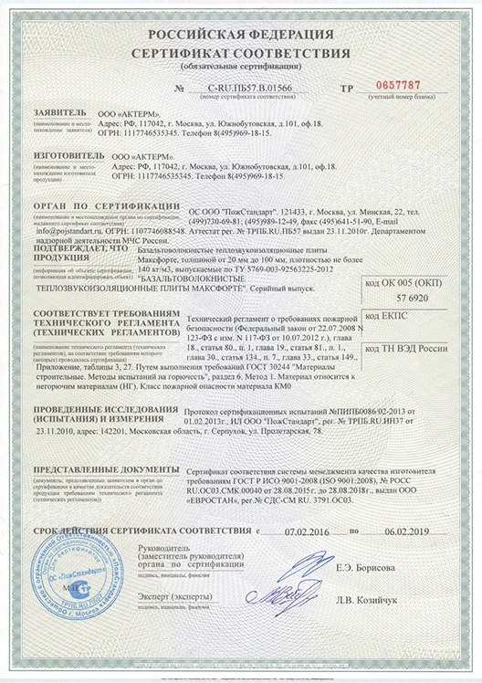 Продукт является экологически чистым. В нем отсутствуют вредные связующие на основе фенол-формальдегидных смол, используемые большинством производителей минеральных плит. Кроме того МаксФорте-ЭКОплита Slim также выступает в роли теплоизоляционного материала: является полностью негорючей, что позволяет использовать ее и в качестве огнезащиты!