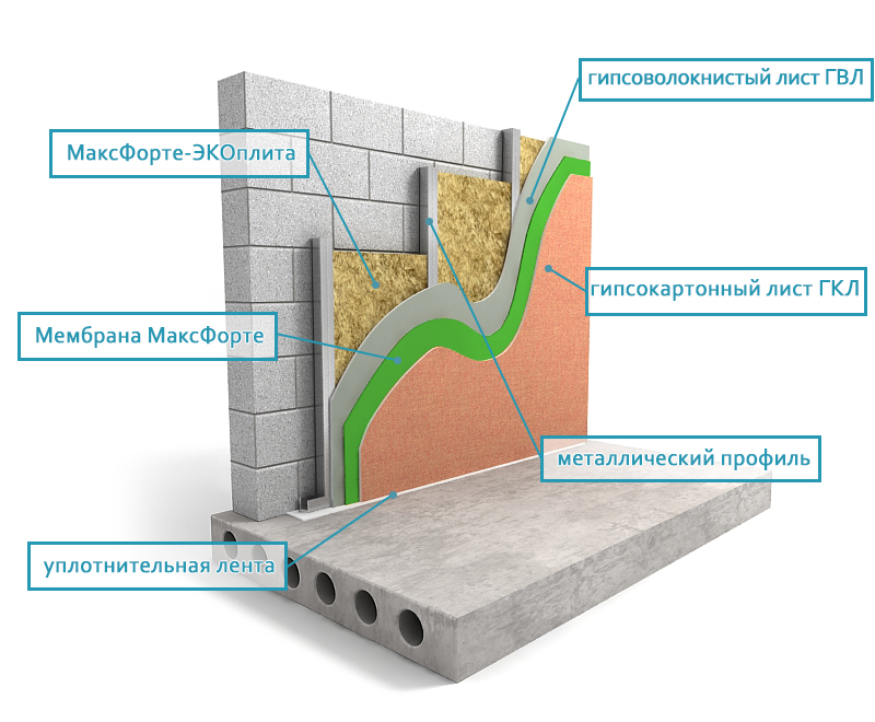 Тяжелая, эластичная мембрана МаксФорте применяется в каркасных и бескаркасных гипсокартонных системах звукоизоляции. Благодаря высокой массе обладает высокими звукоизоляционными свойствами, а за счет эластичности отлично снижает вибрации различных диапазонов. Наиболее эффективное применение мембраны в качестве размещенного слоя между двумя листами гипсокартона.