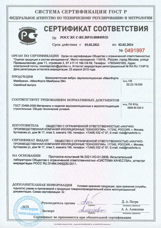 Мембрана МаксФорте является инновационным ультратонким материалом нового поколения (толщина всего 3,7 миллиметра). Вязкоэластичная мембрана МахForte — это тяжелый, синтетический материал, изготовлен на полимерной основе, не содержит битум. Не теряет свои свойства на протяжении 40 лет.