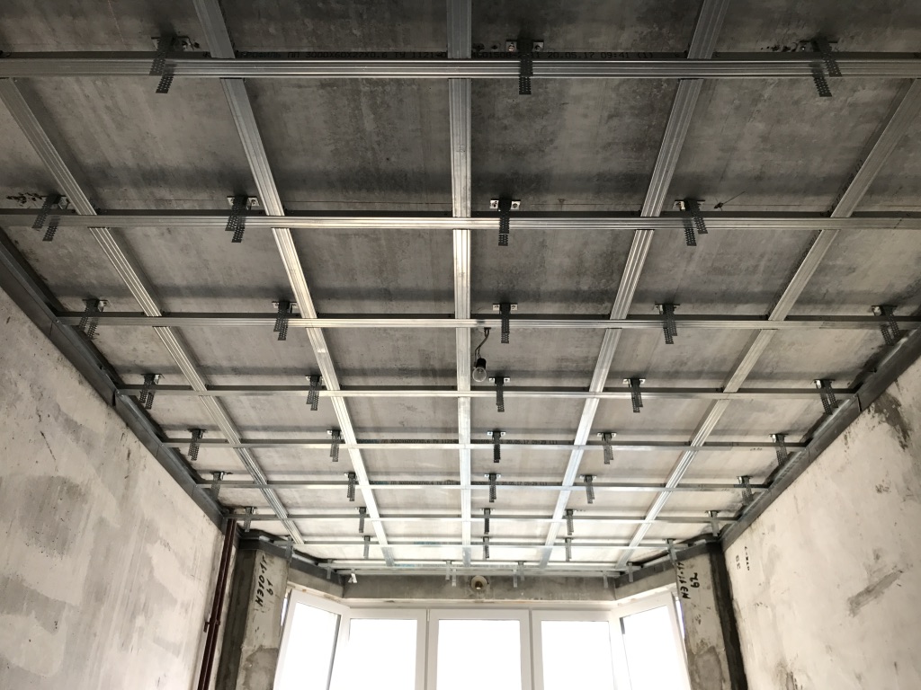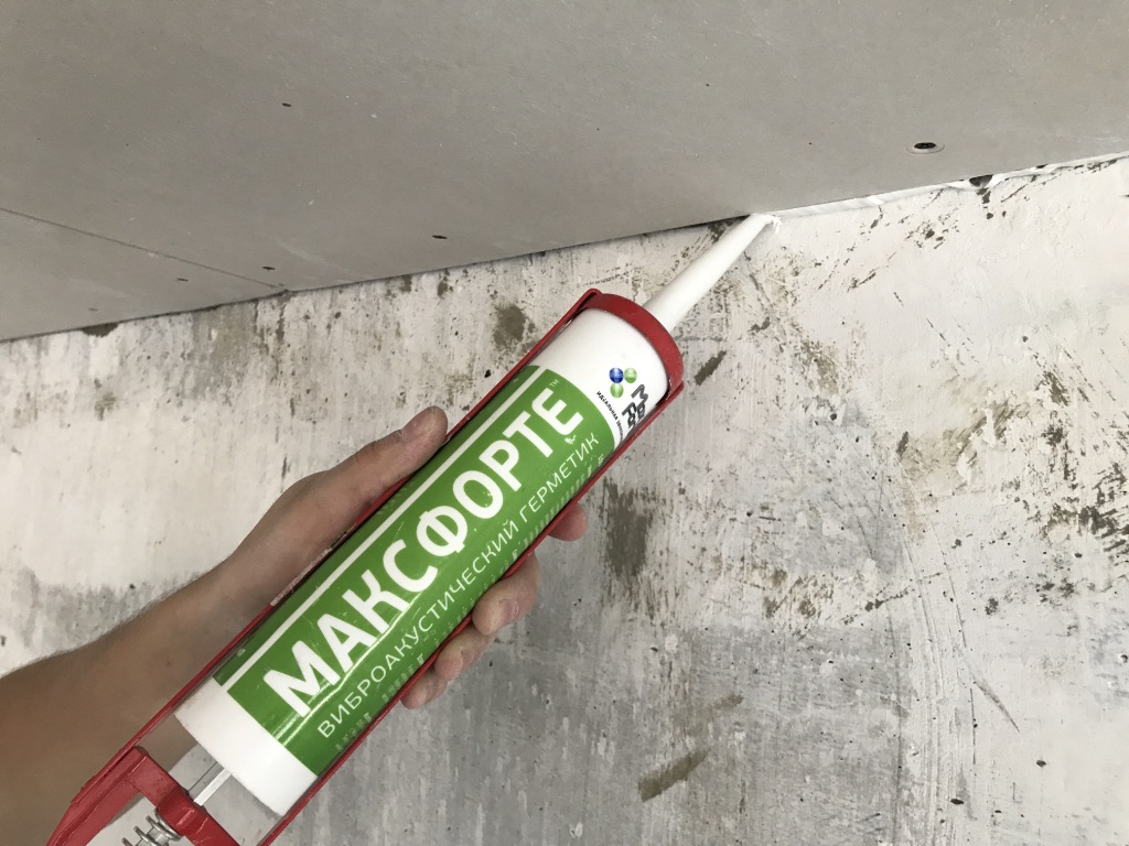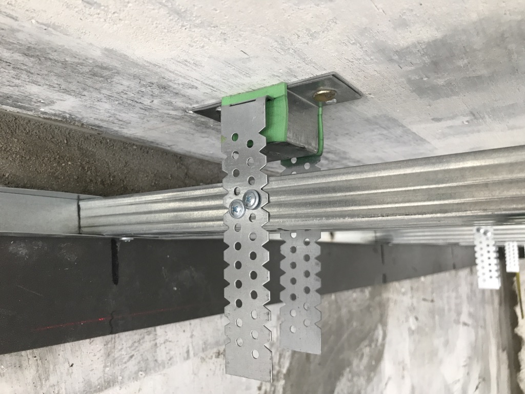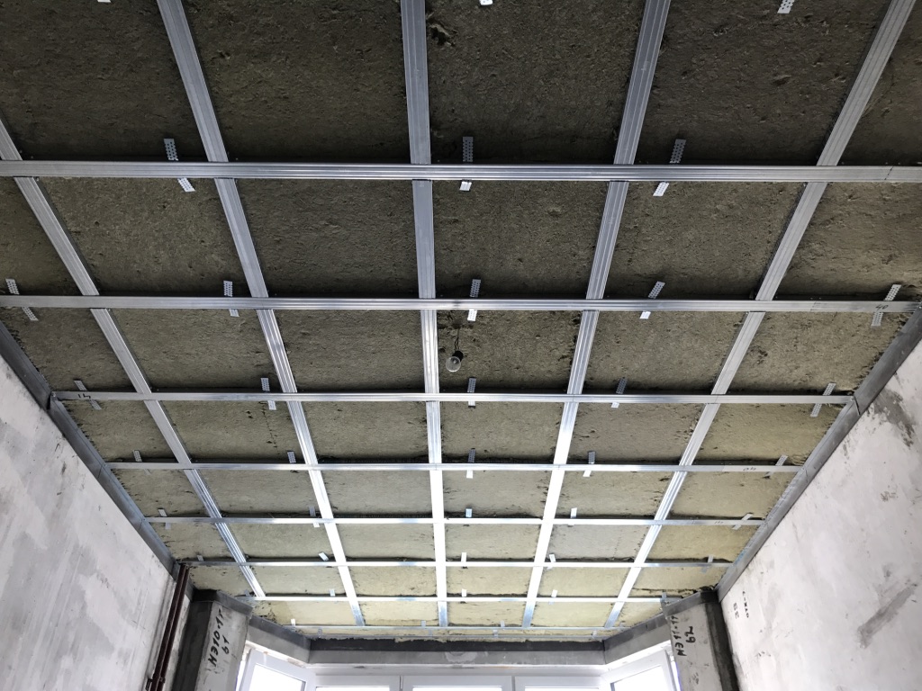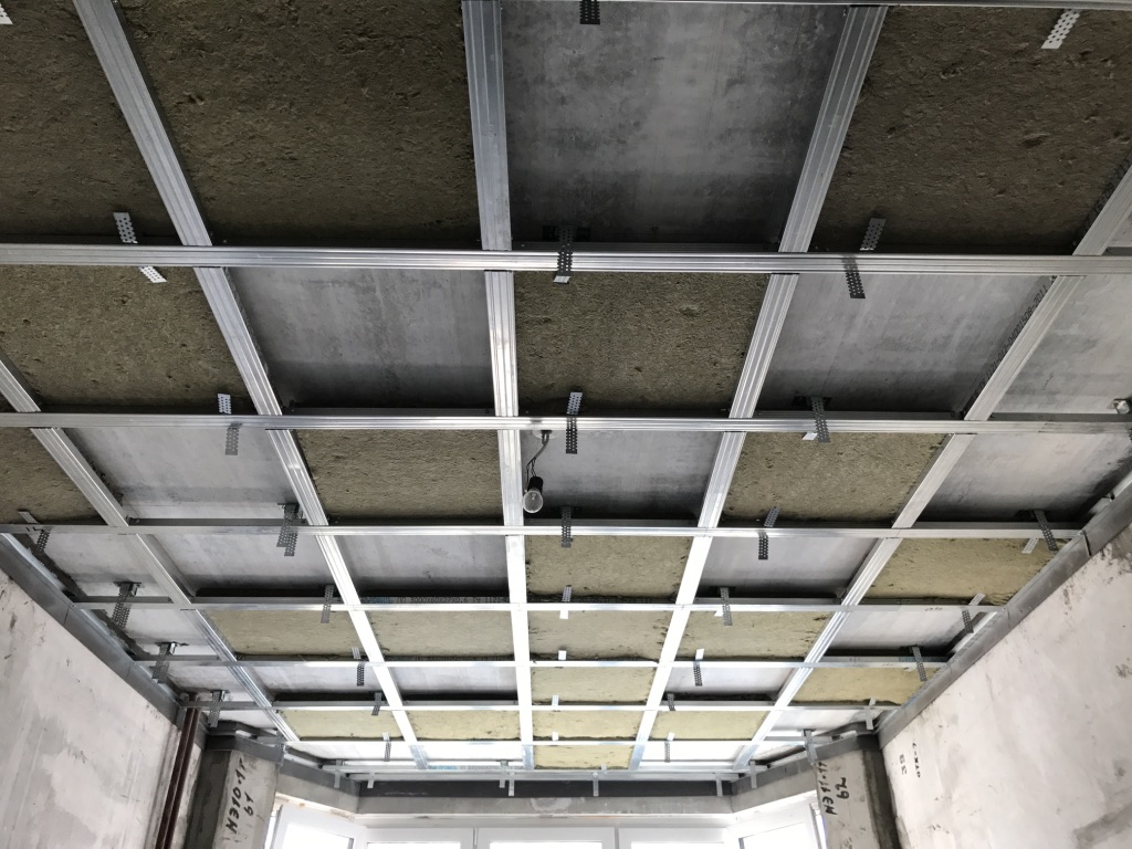 Монтаж выполняется по схеме Базовая звукоизоляция потолка 7-8 см.