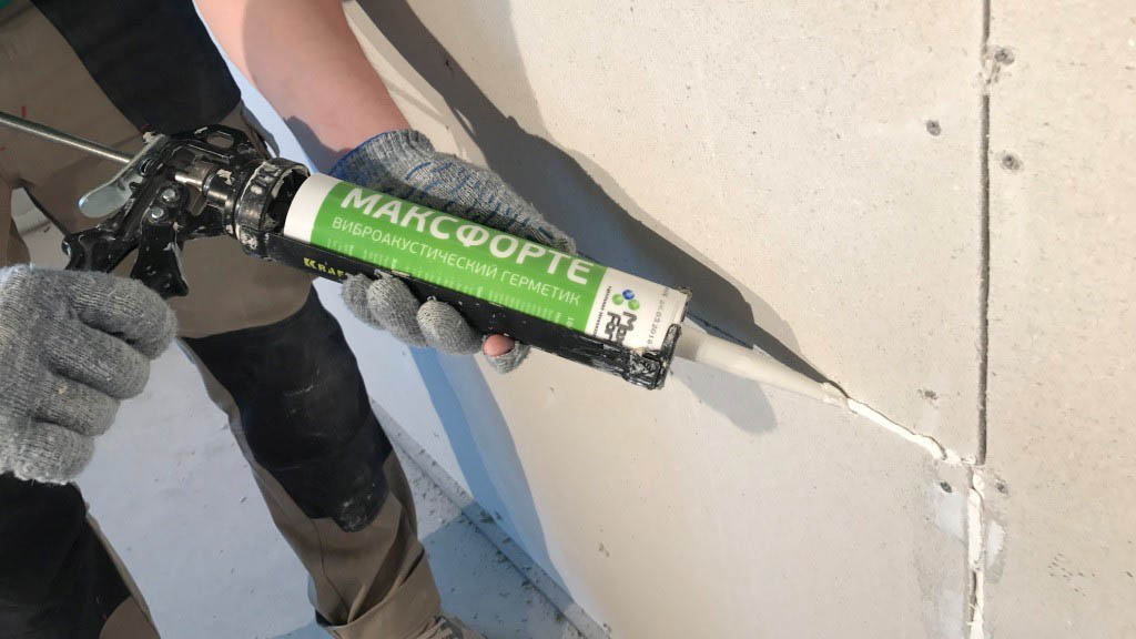Швы между листами ГВЛ проходим силиконовым герметиком МаксФорте.