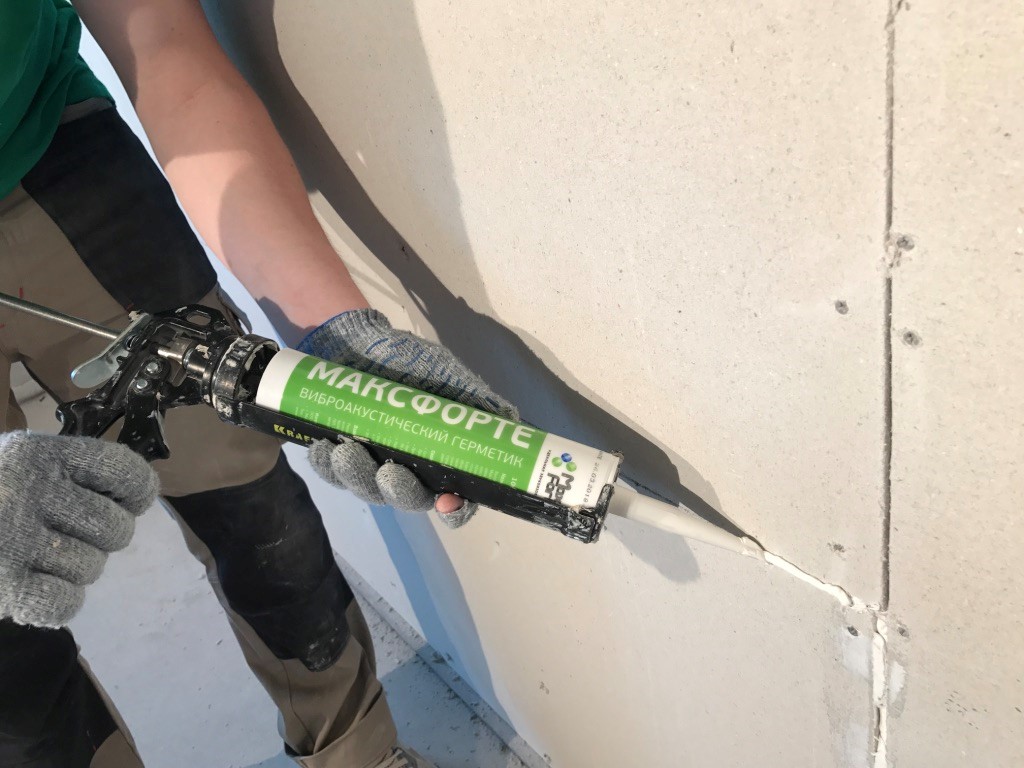 После установки звукоизоляции стены необходимо срезать излишки демпферной ленты и обработать срез нетвердеющим виброакустическим герметиком МаксФорте.