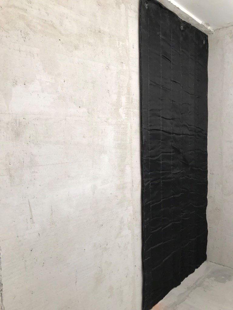 Приложить к изолируемой стене рулоны МаксФорте-SoundPRO и закрепить их сверху пластиковыми дюбель-грибами длиной по 3 грибка на полотно: два по краям, один по центру). Рулоны нужно укладывать «стык в стык». Стыки между рулонами МаксФорте-SoundPRO заклеиваются монтажным скотчем с армированием.