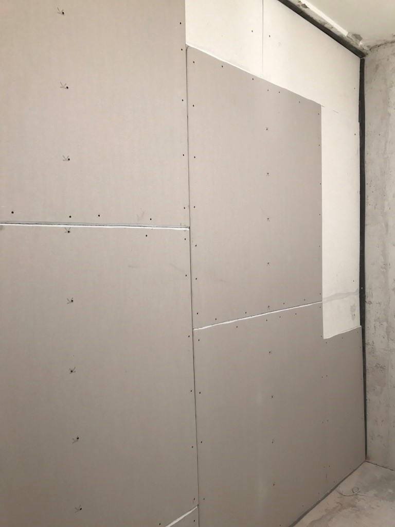 После установки звукоизоляции стены необходимо срезать излишки демпферной ленты и обработать срез нетвердеющим виброакустическим герметиком МаксФорте. Стыки листов гипсокартона в дельнейшем шпаклюются, обрабатывать герметиком их не нужно